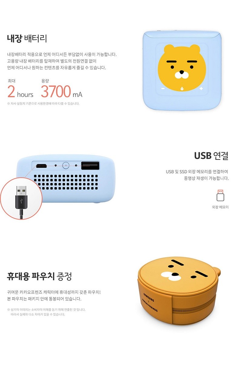 10. 삼성전자 라이언 미니 스마트빔 프로젝터 SSB-12DLWA10